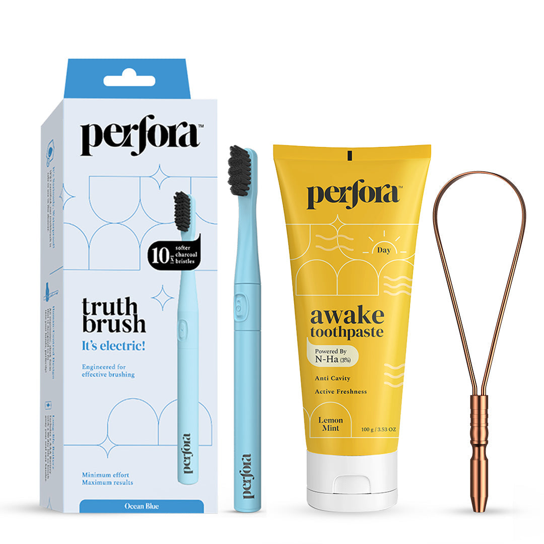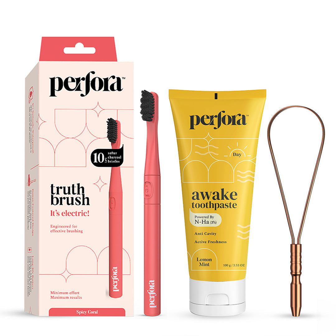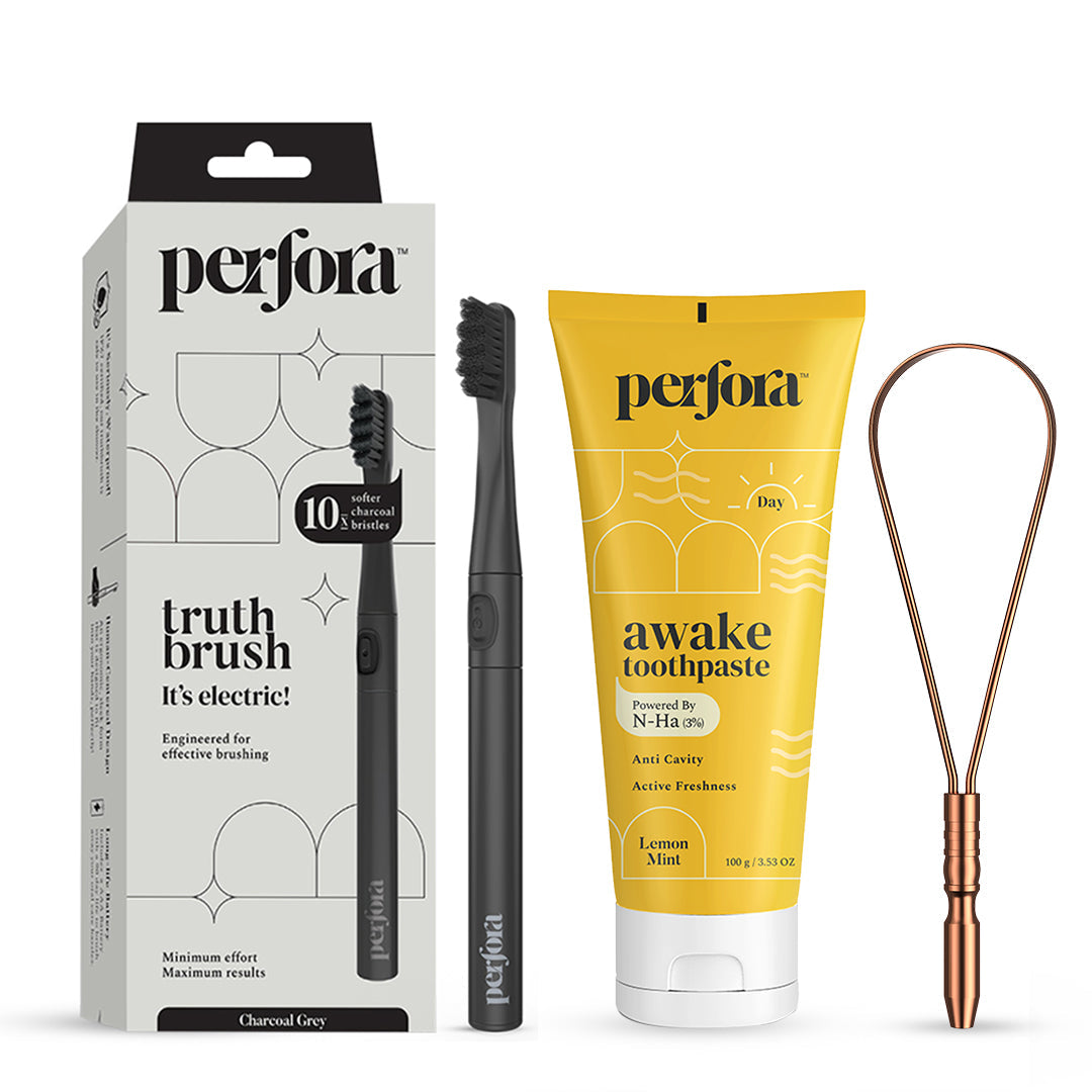The Awake Toothpaste is fortified with powerful remineralising Nano Hydroxyapatite (n-Ha) which is essentially what are teeth enamel is made up of. This helps in strengthening your tooth enamel through remineralising and protect against dental problems like cavities and plaque.