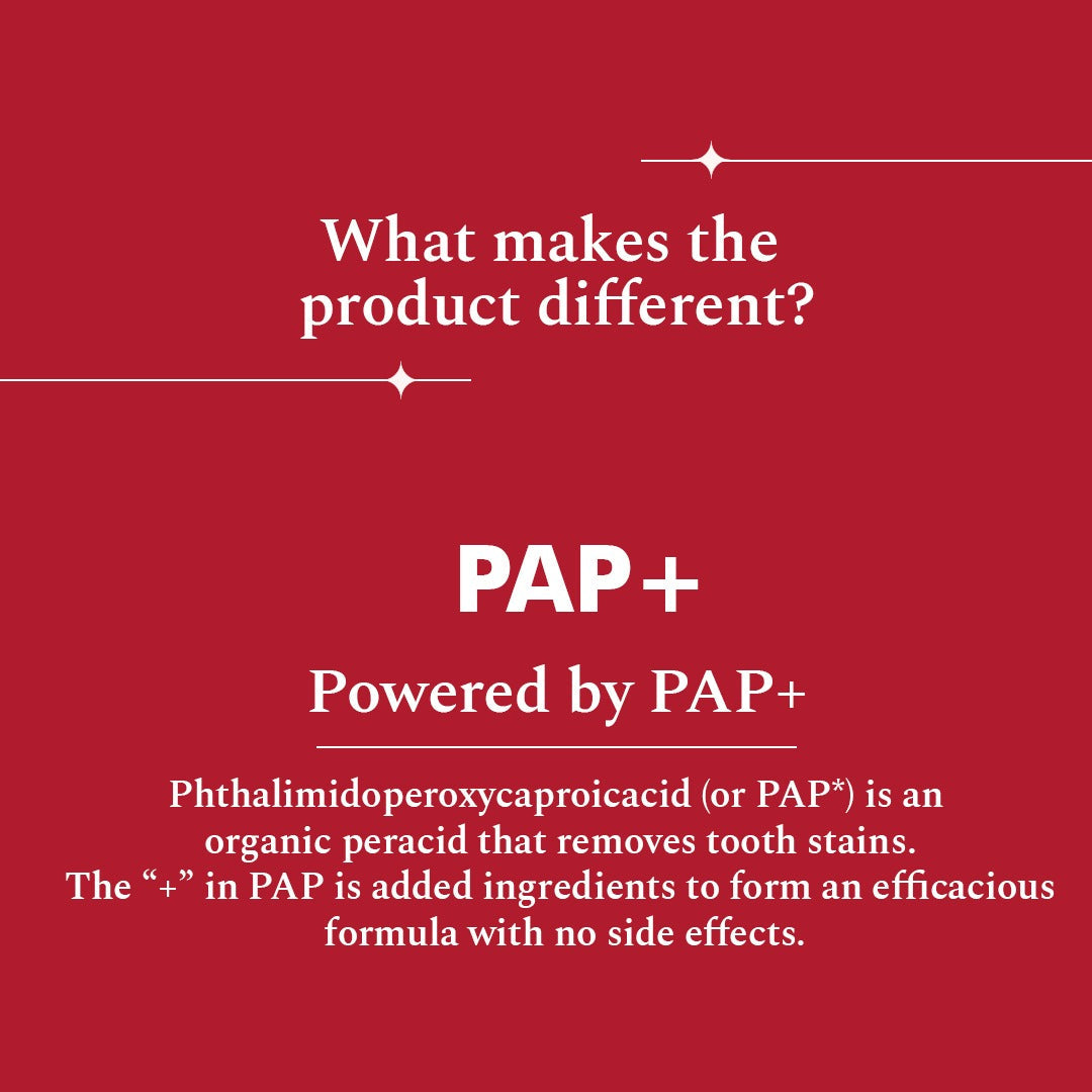 - Consciously formulated with Phthalimido Peroxy Caproic Acid (known as PAP), Hydroxyapatite