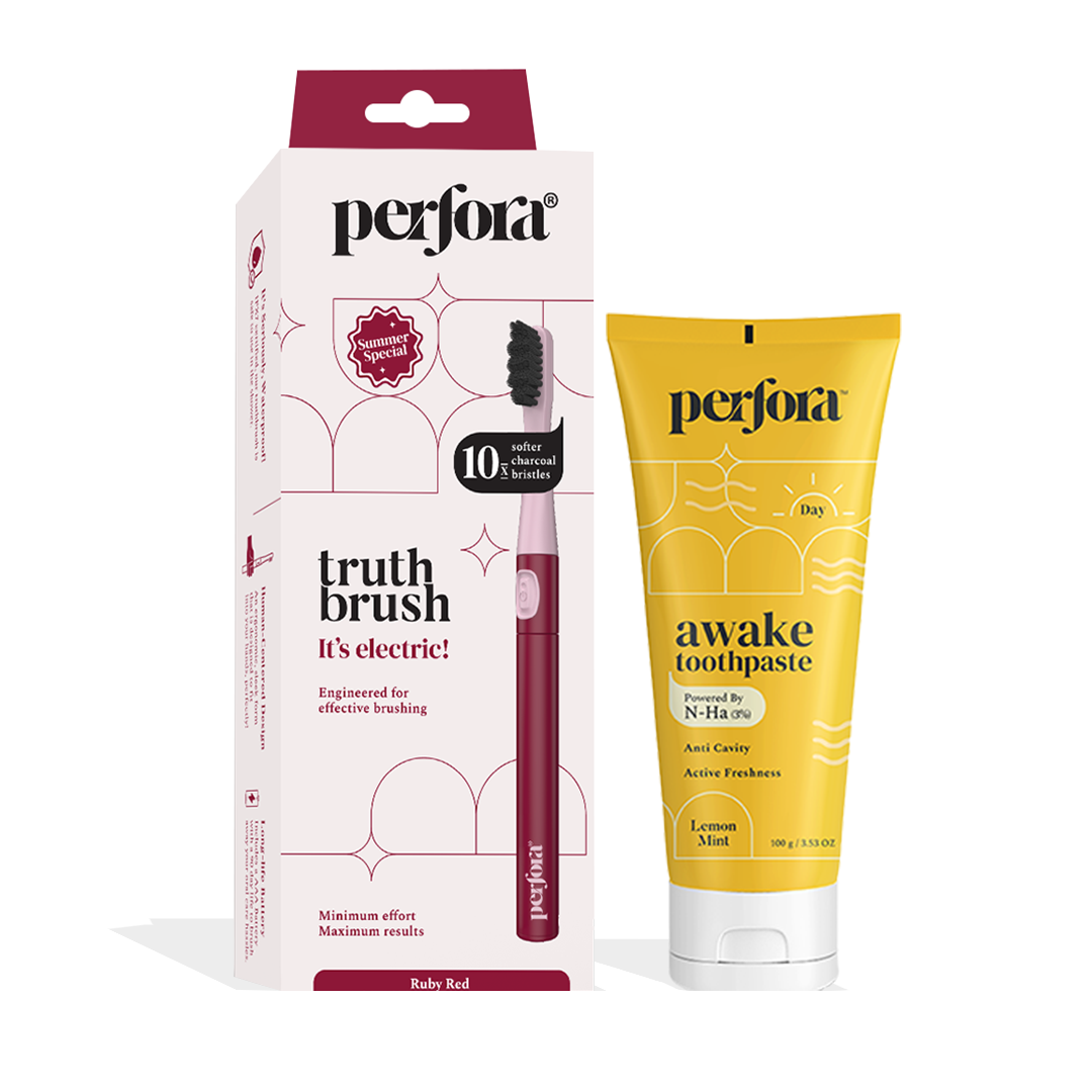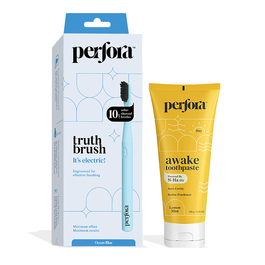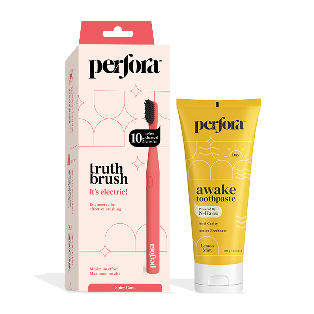 The Awake Toothpaste is fortified with powerful remineralising Nano Hydroxyapatite (n-Ha) which is essentially what are teeth enamel is made up of. This helps in strengthening your tooth enamel through remineralising and protect against dental problems like cavities and plaque.